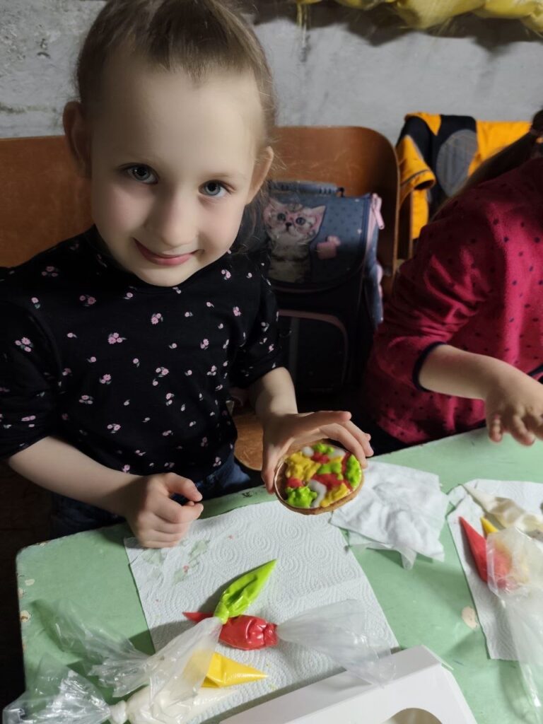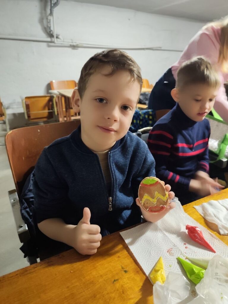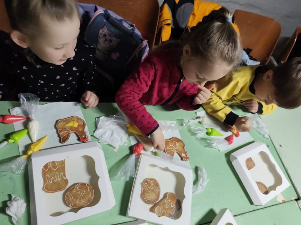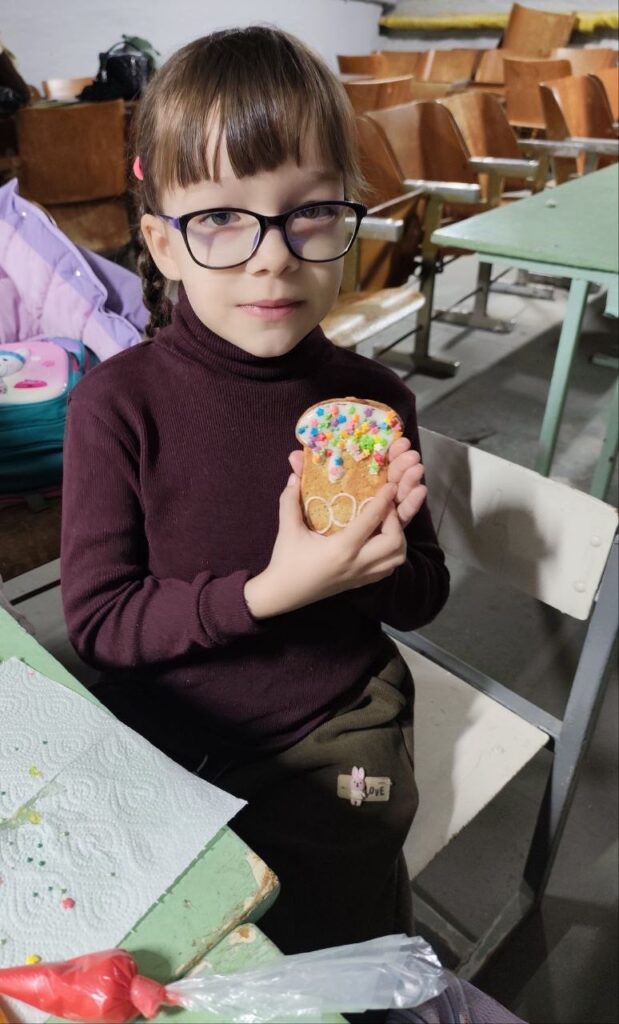 Сьогодні, 08.04.2026, учні 1-Б класу разом із класним керівником Бровко Оксаною Михайлівною долучилися до святкової майстерки — розпису великодніх пряників. Захід проходив у шкільному укритті, але це зовсім не завадило створити справжню атмосферу свята, затишку та дитячого щастя.