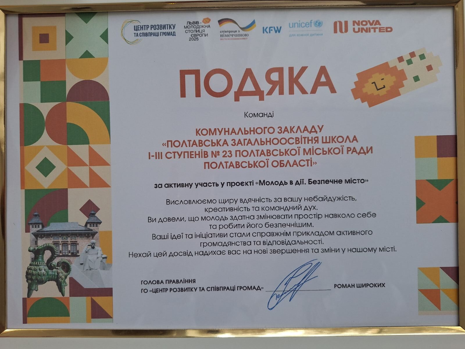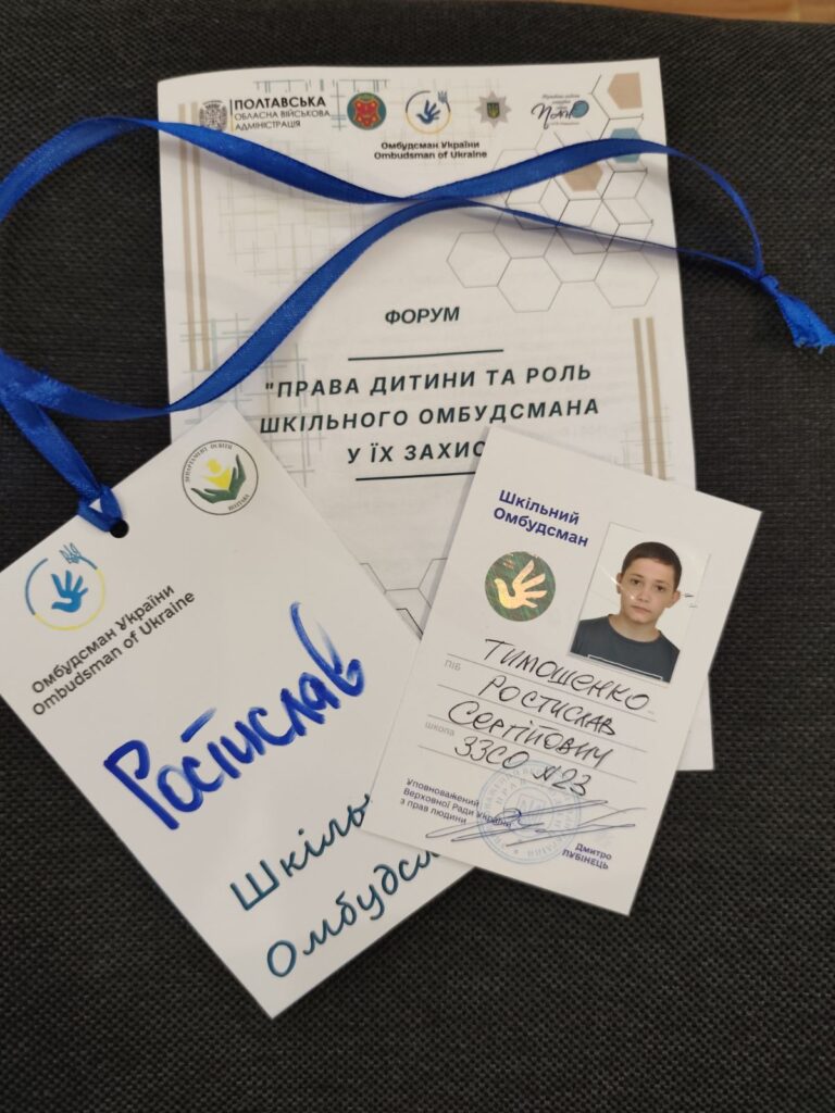 Нашу школу на заході представив Ростислав Тимошенко, шкільний омбудсман Комунального закладу «Полтавська загальноосвітня школа І–ІІІ ступенів №23 Полтавської міської ради Полтавської області».