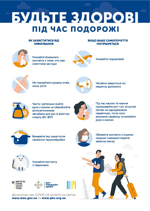 На сьогодні в Україні зафіксовано всього один підтверджений випадок інфікування, утім люди, що подорожують за кордоном, мають підвищений ризик інфікування. Відтак Полтавська міська рада, Департамент охорони здоров’я та соціального розвитку звертається до керівників авто та залізничних вокзалів, компаній-перевізників з проханням розмістити у приміщеннях вокзалів, станцій та транспортних засобах інформаційні плакати-пам’ятки щодо заходів безпеки, які діють змогу убезпечити себе від інфікування та алгоритмом дій в разі підозри на інфікування гострою респіраторною інфекцією, а також поширювати серед пасажирів рейсів міжнародного сполучення флаєр-пам’ятку з номером гарячої лінії Департаменту охорони здоров’я та соціального розвитку Полтавської міської ради.